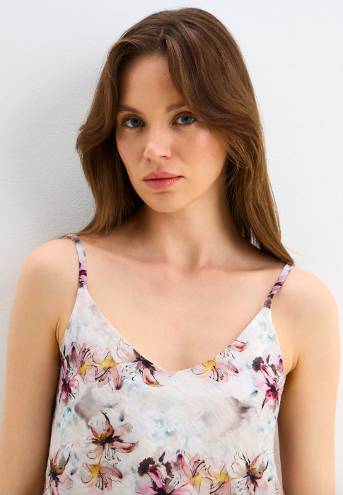 Женский топ на тонких бретелях станет идеальным дополнением вашего гардероба. Элегантный дизайн подчеркивает женственность фигуры, идеально подходит для повседневных образов и вечерних выходов. Материал приятен к телу, обеспечивает комфорт даже в жаркую погоду. Универсальная модель легко сочетается с джинсами, юбками и шортами, создавая стильный и современный образ.